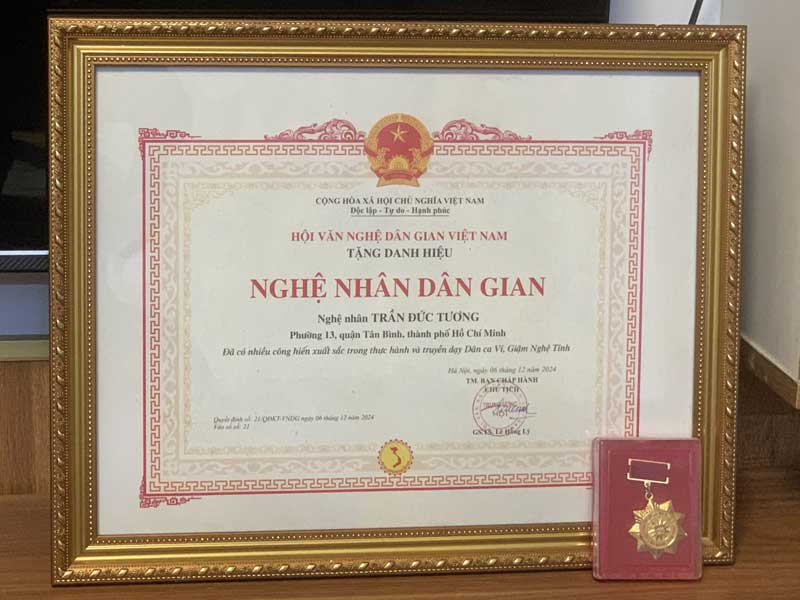 Danh hiệu “Nghệ Nhân Dân Gian” là sự tôn vinh cao quý của Hội Văn nghệ Dân gian Việt Nam (VNDGVN) dành cho các cá nhân có nhiều năm cống hiến trong việc gìn giữ, bảo tồn và phát huy các giá trị văn hóa truyền thống. Đối với Nghệ nhân Đức Tương, đây là sự ghi nhận xứng đáng cho hành trình bền bỉ lan tỏa làn điệu dân ca Ví, Giặm của quê hương xứ Nghệ đến cộng đồng người dân xa xứ tại phương Nam.